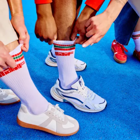 En ligne depuis mai 2024, la collection MAIF Héritage est une création à la fois moderne et vintage. Elle a été pensée de façon éco-responsable et durable par les designers de l’agence Affective. Tous les produits ont été fabriqués en Europe, en quantité limitée, dans un souci constant de réduire l’empreinte carbone et d’éviter le gaspillage et la surproduction. Les chaussettes ont été tissés avec du fil de coton bio, sourcé en Union Européenne. Les tee-shirts et les sweat-shirts sont certifiés GOTS (Global Organic Textile Standard), une norme mondiale pour les fibres organiques, qui inclut des critères écologiques et sociaux.
